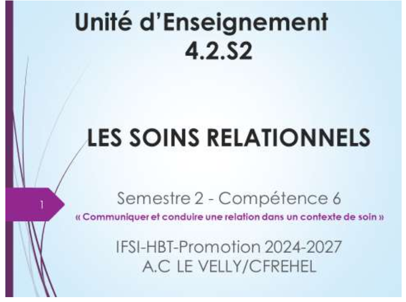 - ´Identifier les éléments permettant de communiquer et conduire une relation dans un contexte de soins.