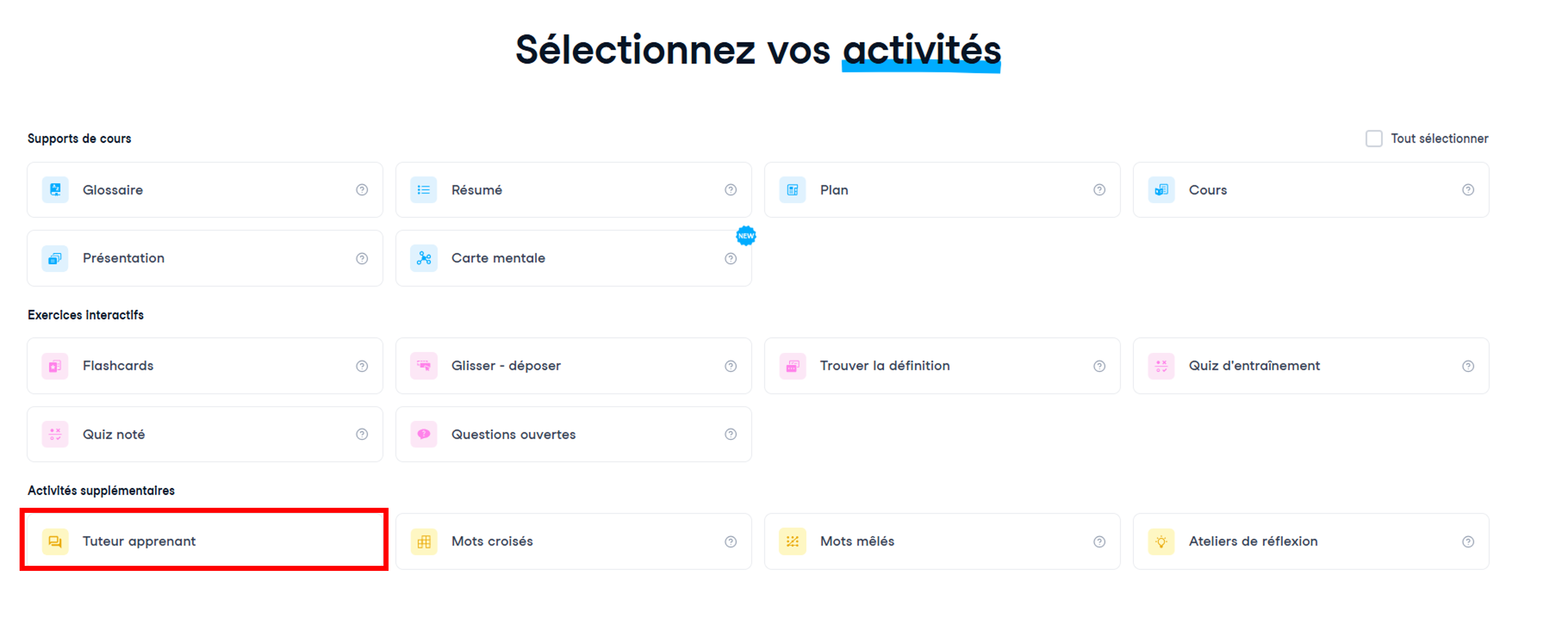 Dans la liste des activités à générer, cochez Tuteur apprenant.
